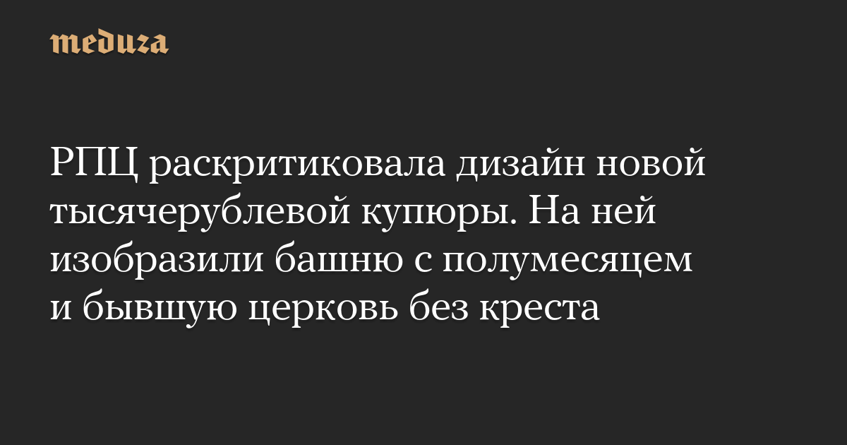 Представители РПЦ раскритиковали дизайн банкноты, посчитав, что бывшую церковь можно было бы изобразить вместе с крестом. «Вы что там, товарищи, совсем страх потеряли? На новой купюре в 1000 рублей изображаете минарет с полумесяцем, а купол православного храма без креста. Не играйте с огнем», — написал в телеграме священник РПЦ Павел Островский.