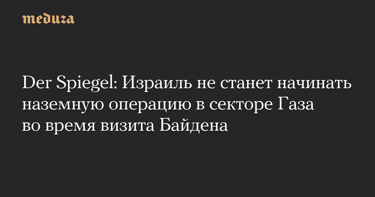 Der Spiegel: Израиль не станет начинать наземную операцию в секторе Газа во время визита Байдена