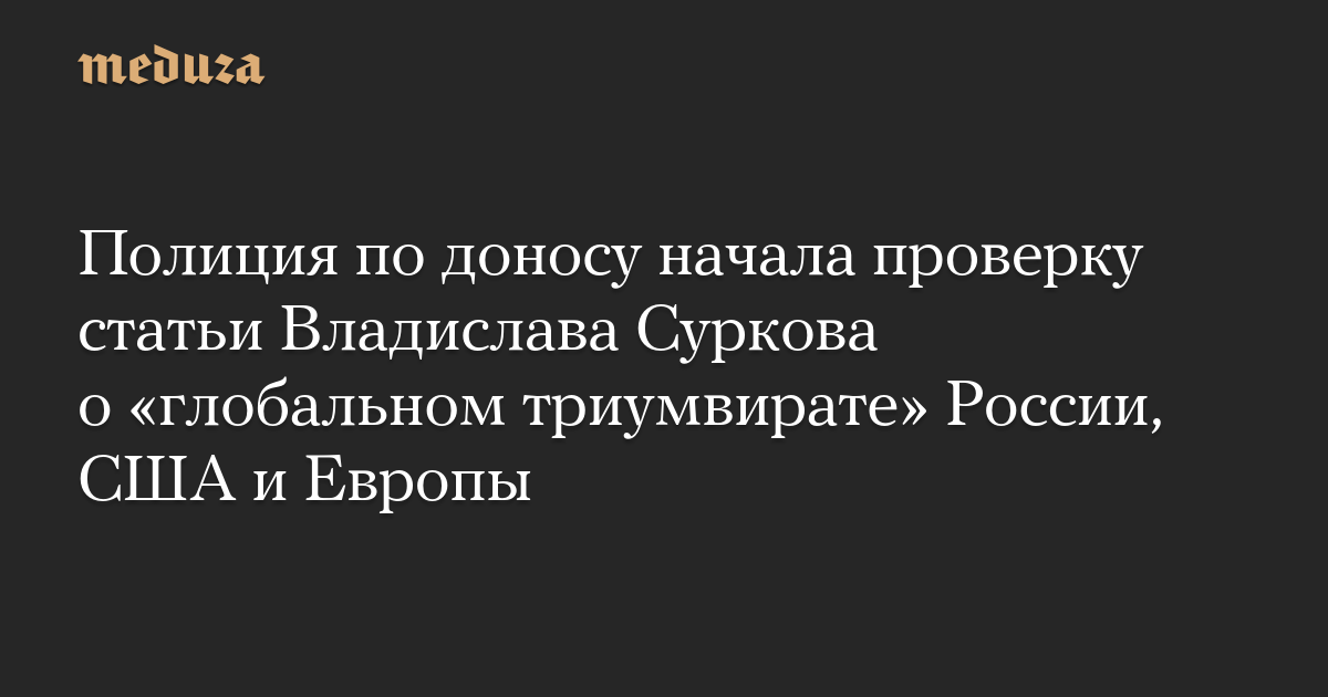Полиция по доносу начала проверку статьи Владислава Суркова о «глобальном триумвирате» России, США и Европы