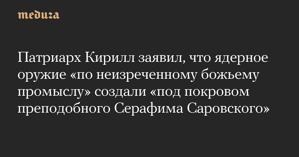Патриарх Кирилл заявил, что ядерное оружие «по неизреченному божьему промыслу» создали «под покровом преподобного Серафима Саровского»