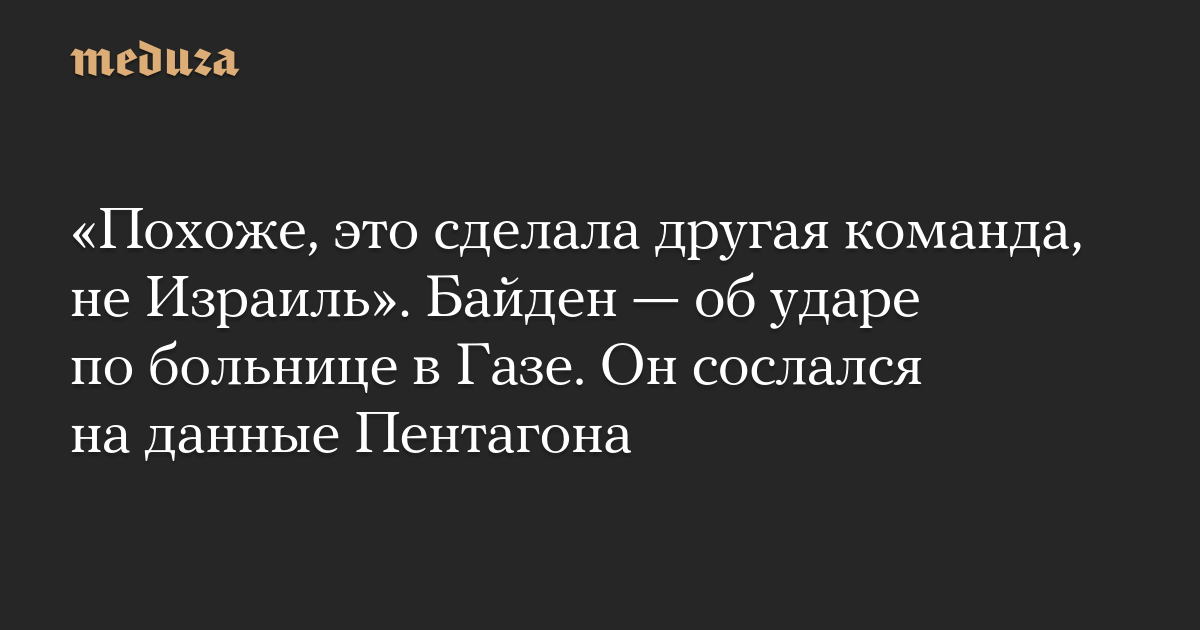 «Похоже, это сделала другая команда, не Израиль». Байден — об ударе по больнице в Газе. Он сослался на данные Пентагона
