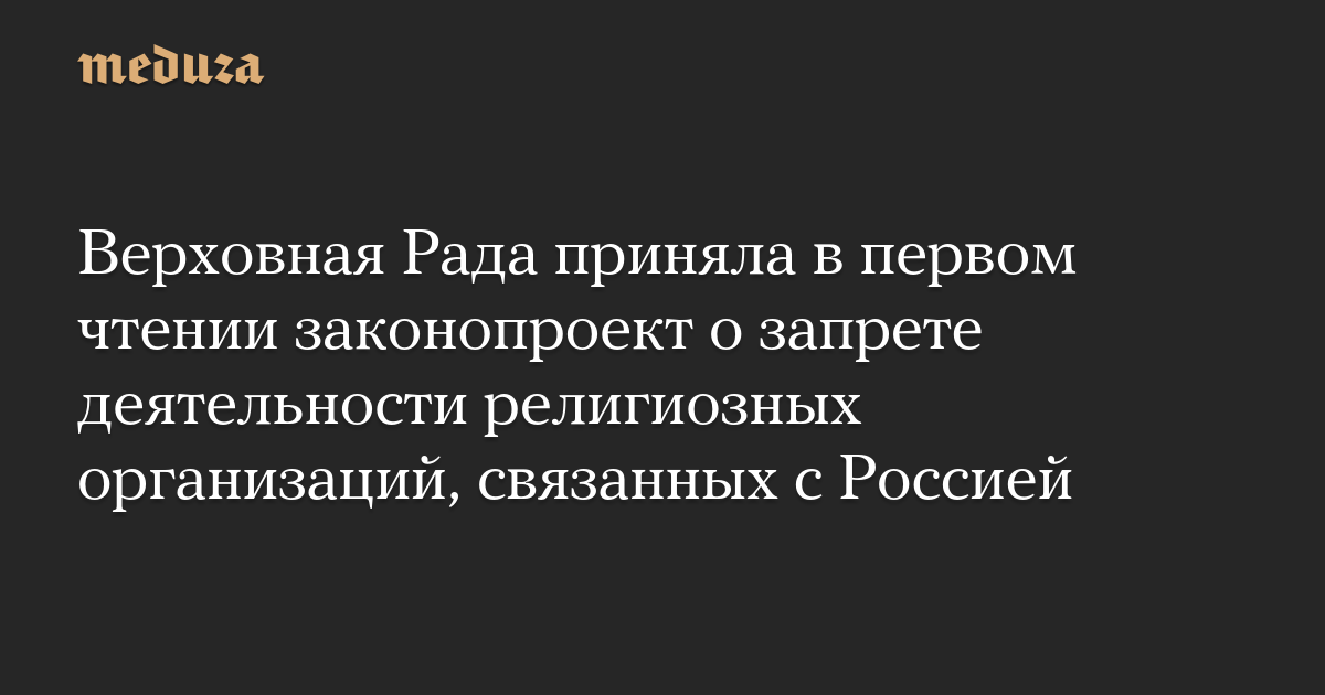 Проект закона, запрещающий деятельность в Украине религиозных организаций, связанных с Россией, прошел первое чтение в Верховной Раде.