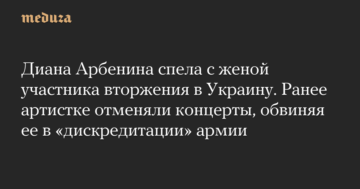 Диана Арбенина спела с женой участника вторжения в Украину. Ранее артистке отменяли концерты, обвиняя ее в «дискредитации» армии