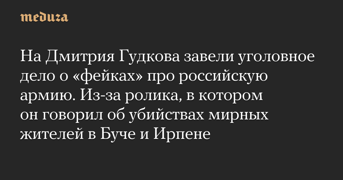 На Дмитрия Гудкова завели уголовное дело о «фейках» про российскую армию. Из-за ролика, в котором он говорил об убийствах мирных жителей в Буче и Ирпене