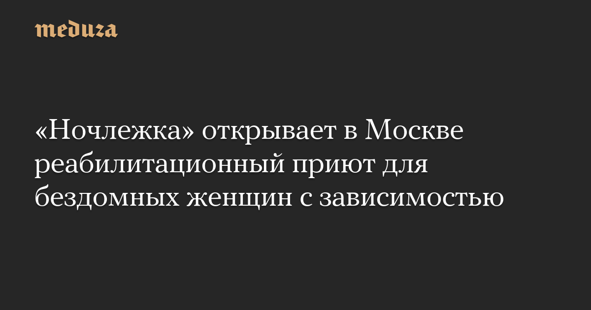 «Ночлежка» открывает в Москве реабилитационный приют для бездомных женщин с зависимостью