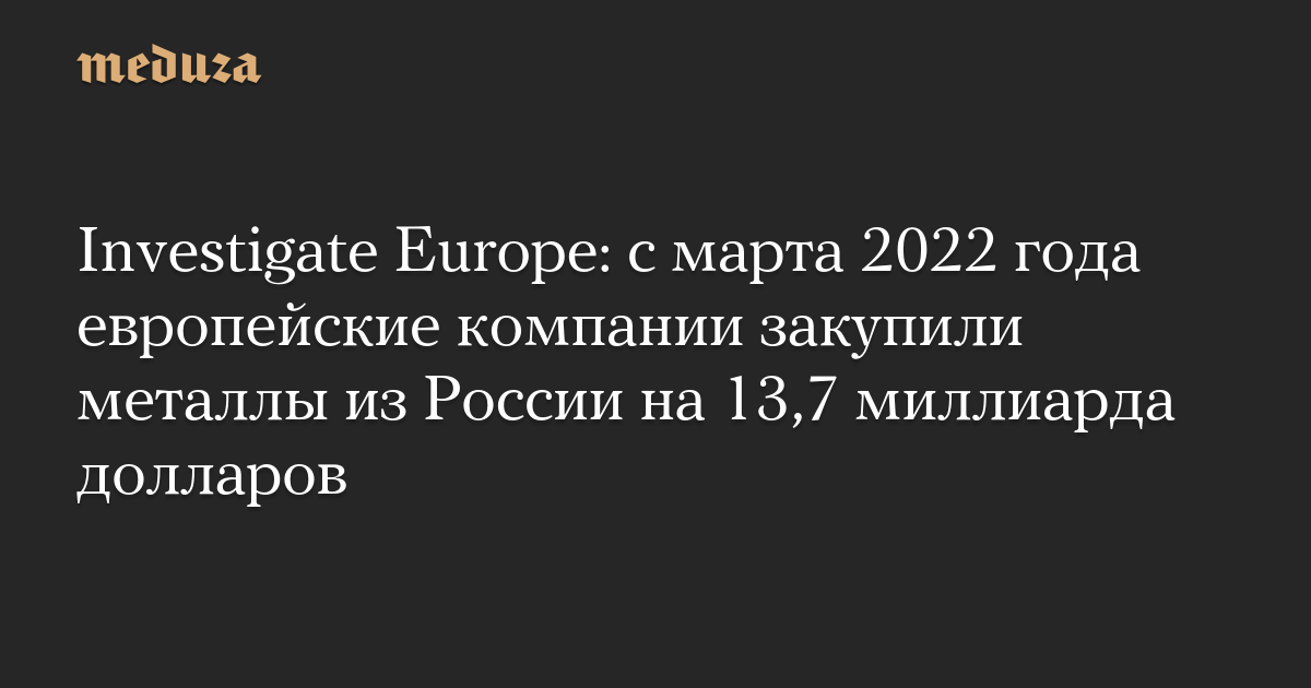 Investigate Europe пишет, что среди крупнейших покупателей российских металлов — немецкая GGP Metal Powder (закупила медь на 66 миллиона долларов), французский производитель оружия Safran (закупил титан на 25 миллиона долларов), греческая Elval Halcor (закупила алюминий на 13 миллионов долларов) и нидерландская C.Steinweg (закупила различные металлы на 100 миллионов долларов.