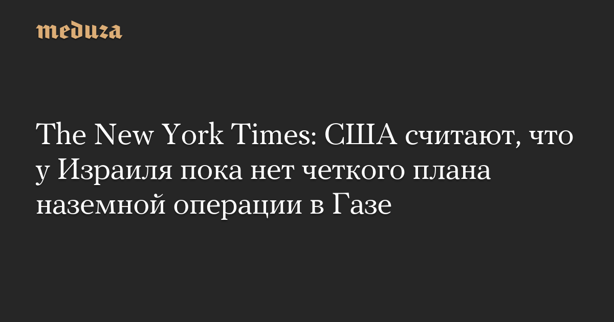 Соединенные Штаты считают, что Израиль пока не разработал четкий план проведения наземной операции в Газе, пишет The New York Times со ссылкой на источники.
