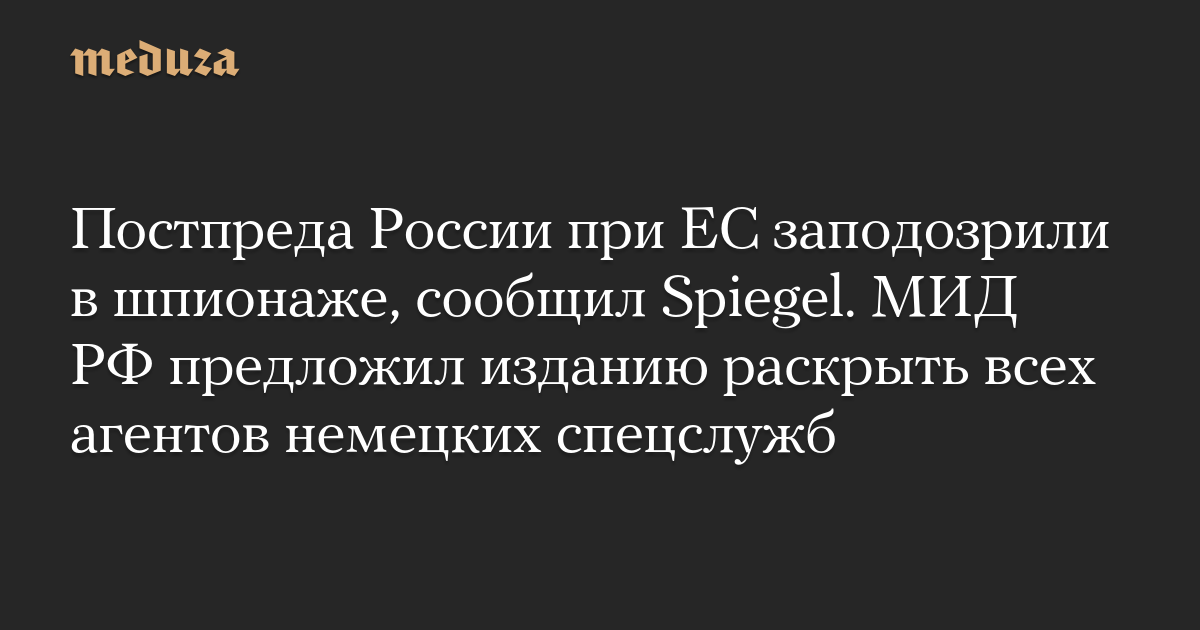 Постпреда России при ЕС заподозрили в шпионаже, сообщил Spiegel. МИД РФ предложил изданию раскрыть всех агентов немецких спецслужб