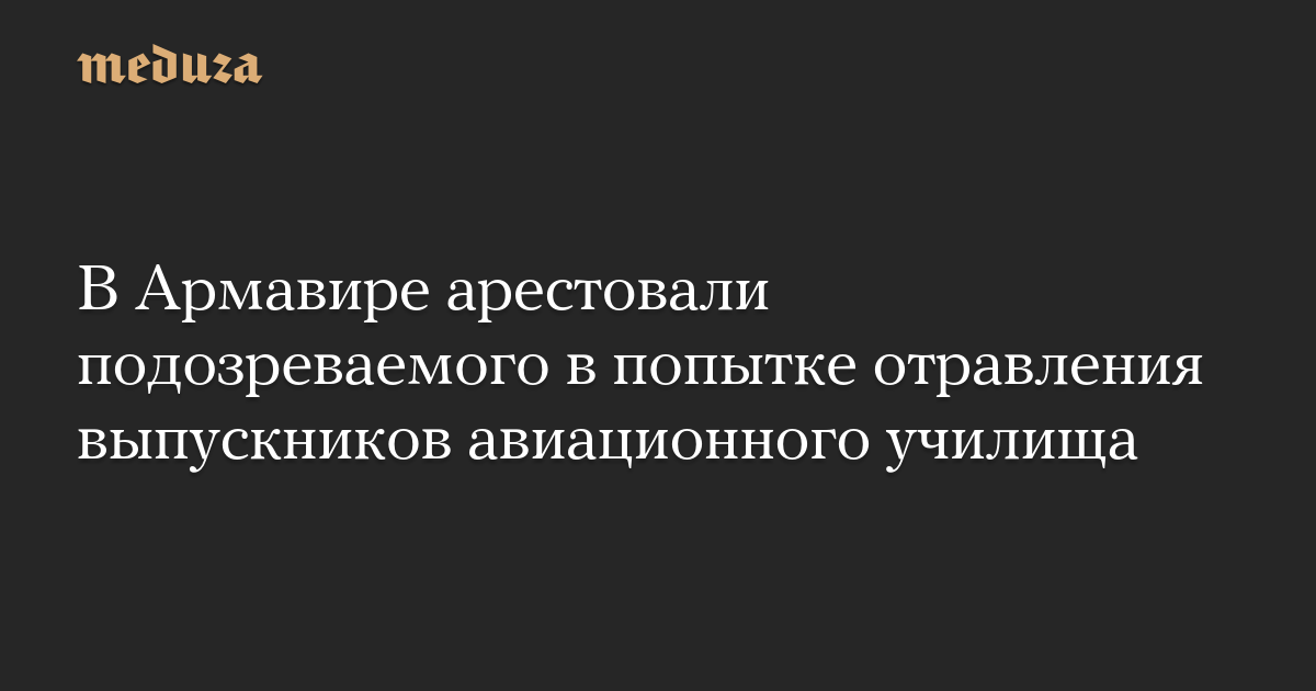 Армавирский городской суд арестовал на 15 суток за мелкое хулиганство уроженца Мелитополя Егора Семенова, которого следователи проверяют на причастность к попытке отравления участников встречи выпускников Армавирского высшего военного авиационного училища (АВВАУЛ), сообщает «Коммерсант».