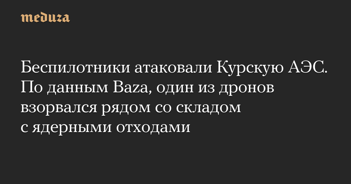 По данным Baza, все три беспилотника атаковали Курскую АЭС. Взрывные устройства, которые несли два из них, по каким-то причинам не сдетонировали. Третий беспилотник, утверждает издание, взорвался возле склада с ядерными отходами. По информации источников Baza, в результате взрыва был поврежден фасад здания склада.