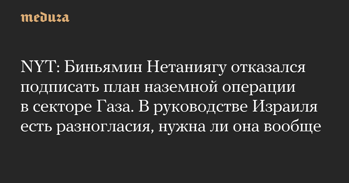 NYT: Биньямин Нетаниягу отказался подписать план наземной операции в секторе Газа. В руководстве Израиля есть разногласия, нужна ли она вообще