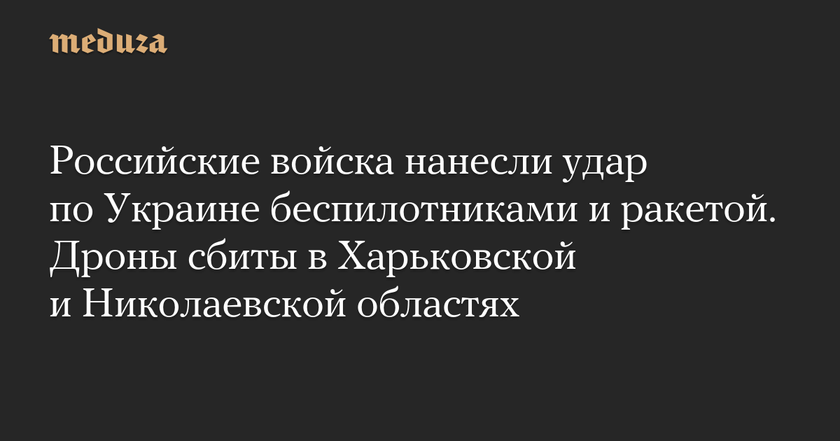 Российские войска нанесли удар по Украине беспилотниками и ракетой. Дроны сбиты в Харьковской и Николаевской областях