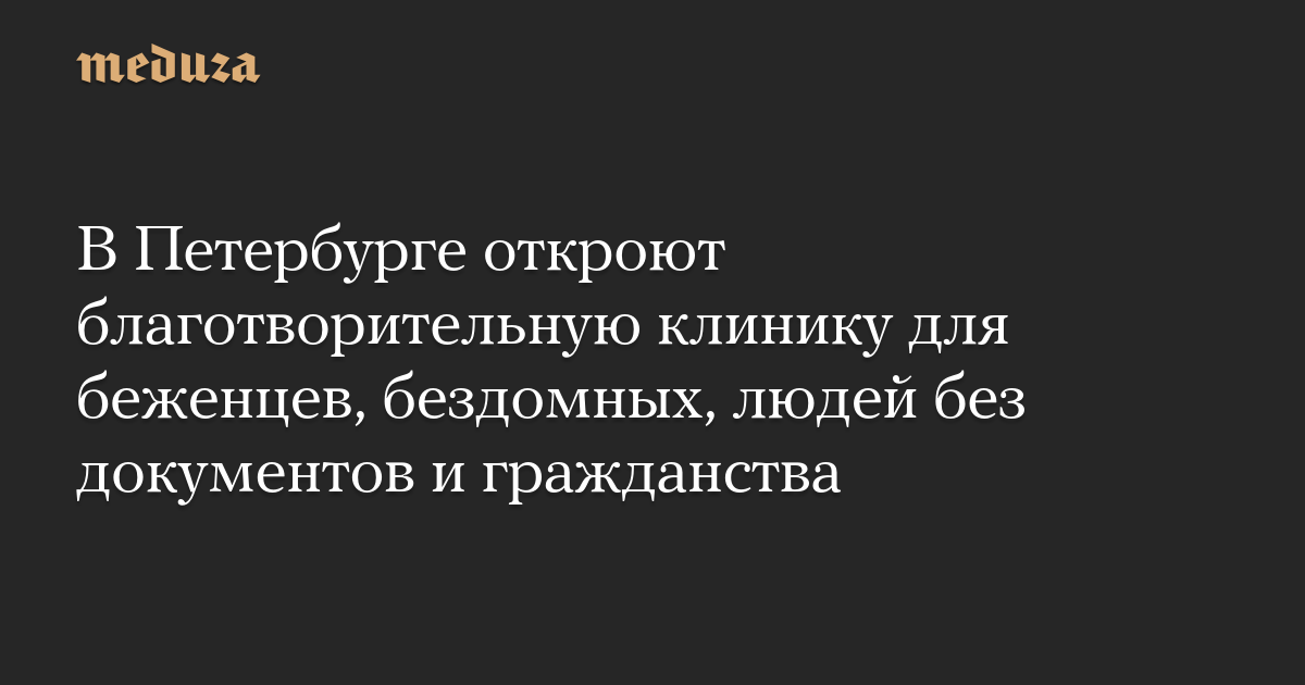 В Петербурге откроют благотворительную клинику для беженцев, бездомных, людей без документов и гражданства