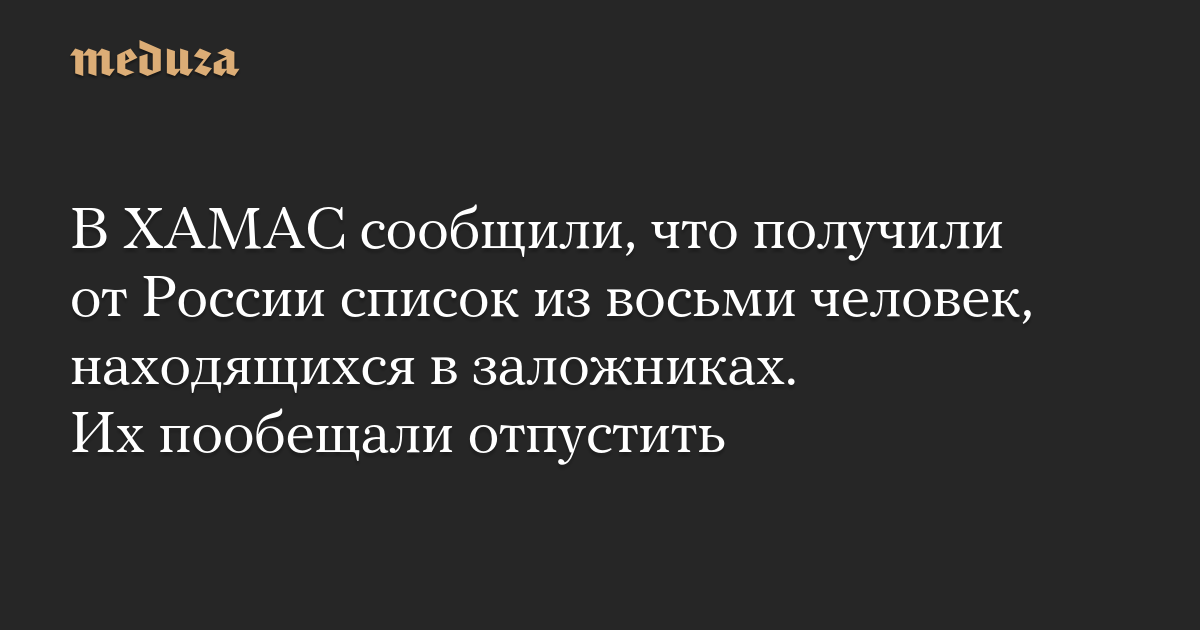В ХАМАС сообщили, что получили от России список из восьми человек, находящихся в заложниках. Их пообещали отпустить