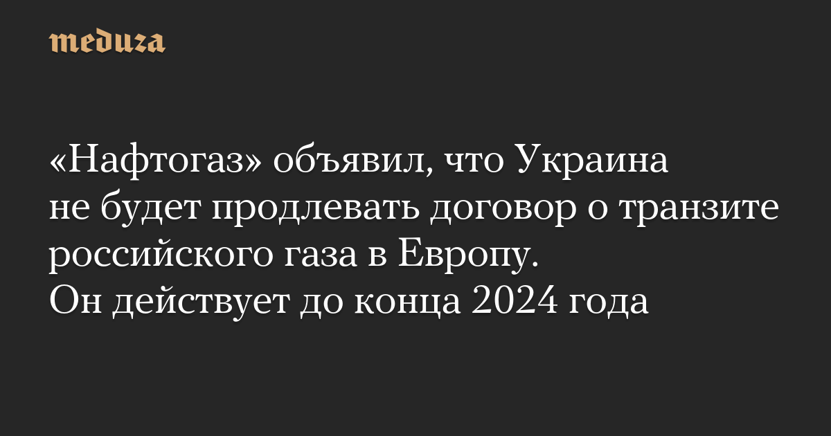 «Нафтогаз» объявил, что Украина не будет продлевать договор о транзите российского газа в Европу. Он действует до конца 2024 года