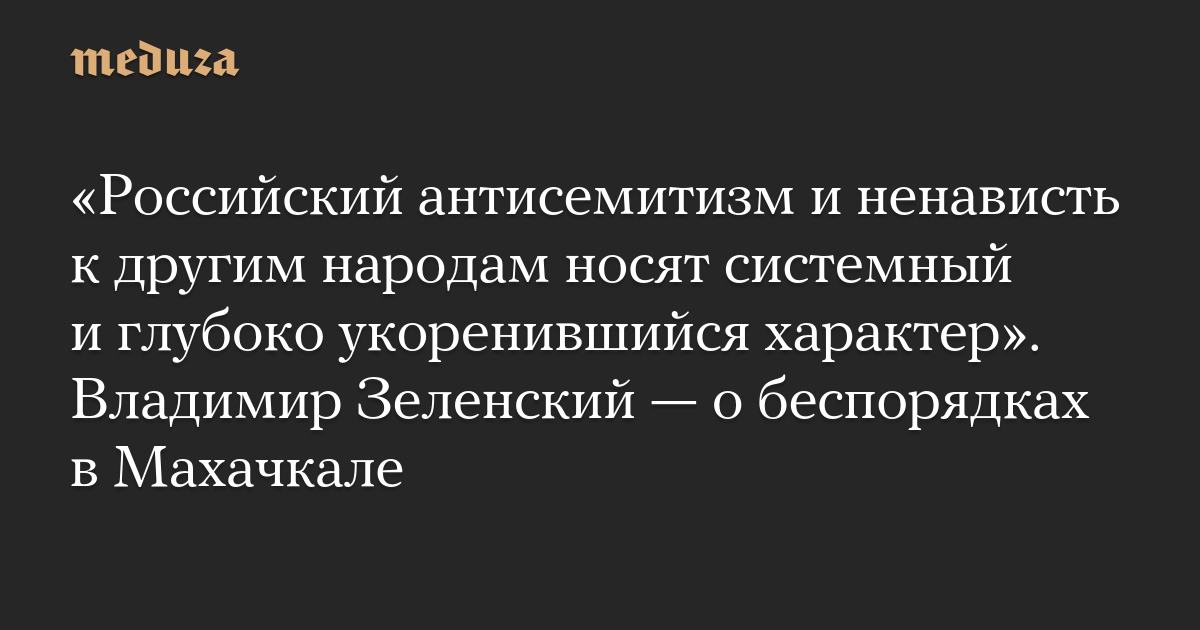 «Российский антисемитизм и ненависть к другим народам носят системный и глубоко укоренившийся характер». Владимир Зеленский — о беспорядках в Махачкале