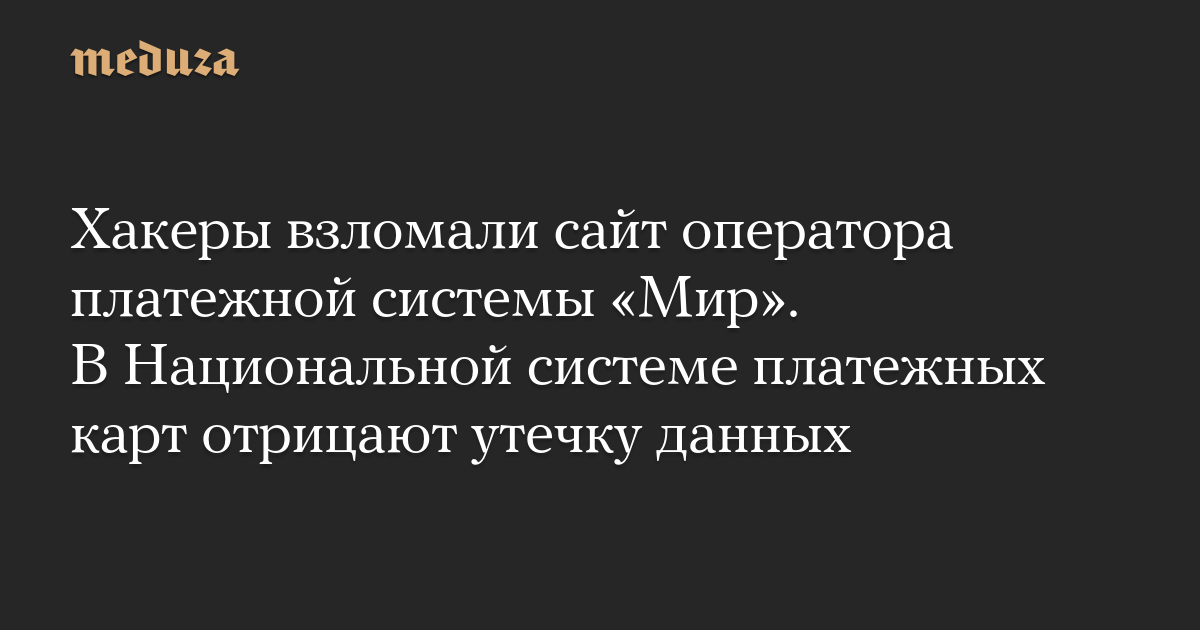 Вечером 30 октября сайт Национальной системы платежных карт (НСПК) — оператора российской платежной системы «Мир» — взломали хакеры.