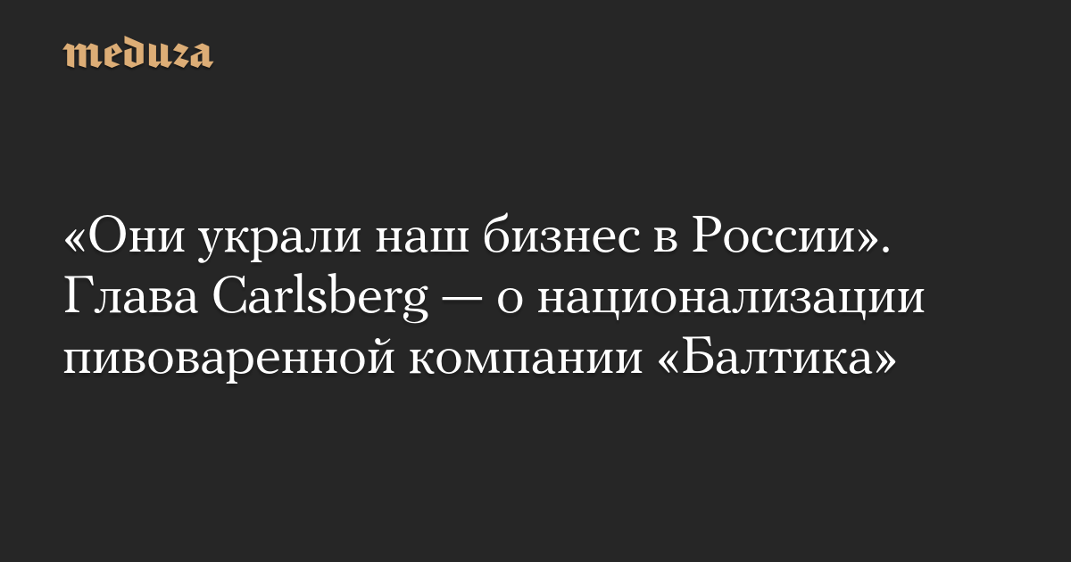 «Они украли наш бизнес в России». Глава Carlsberg — о национализации пивоваренной компании «Балтика»