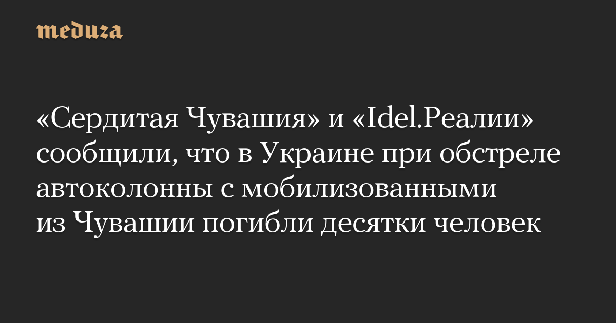 «Сердитая Чувашия» и «Idel.Реалии» сообщили, что в Украине при обстреле автоколонны с мобилизованными из Чувашии погибли десятки человек