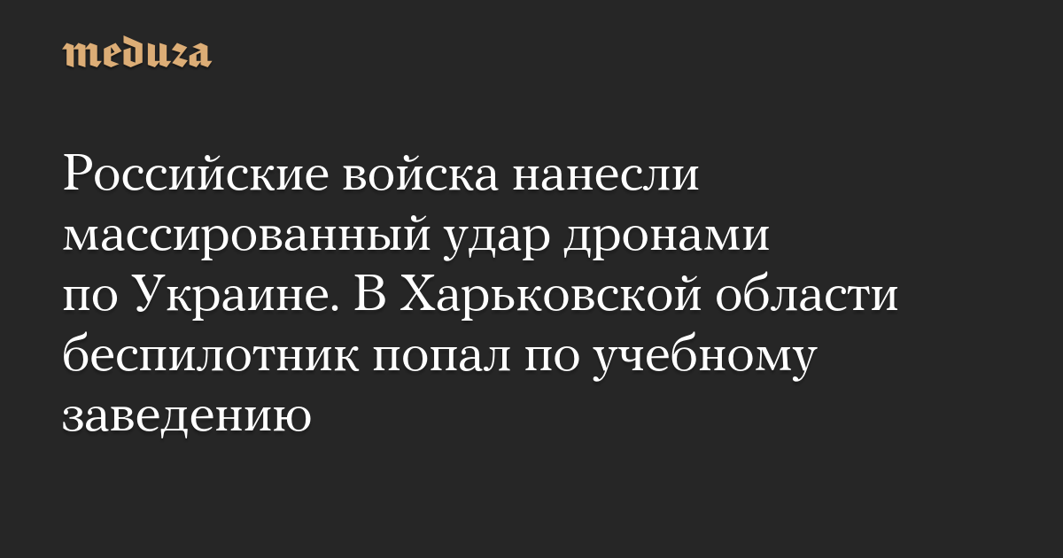 Российские войска нанесли массированный удар дронами по Украине. В Харьковской области беспилотник попал по учебному заведению