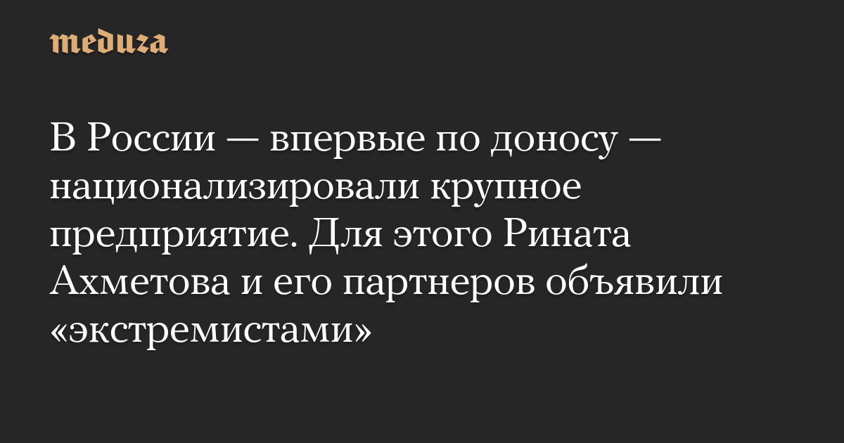 В России — впервые по доносу — национализировали крупное предприятие. Для этого Рината Ахметова и его партнеров объявили «экстремистами»