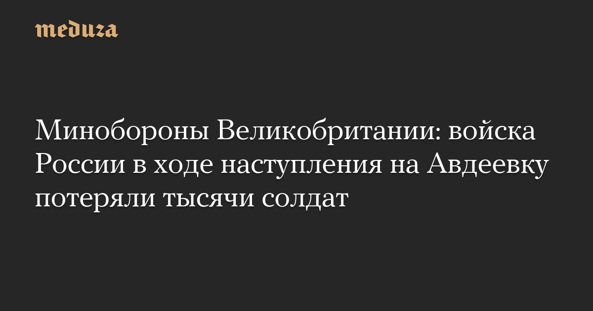 Войска России с начала октября потеряли несколько тысяч солдат во время наступления на Авдеевку в Донецкой области, сообщило министерство обороны Великобритании в своем ежедневном обзоре ситуации в Украине.