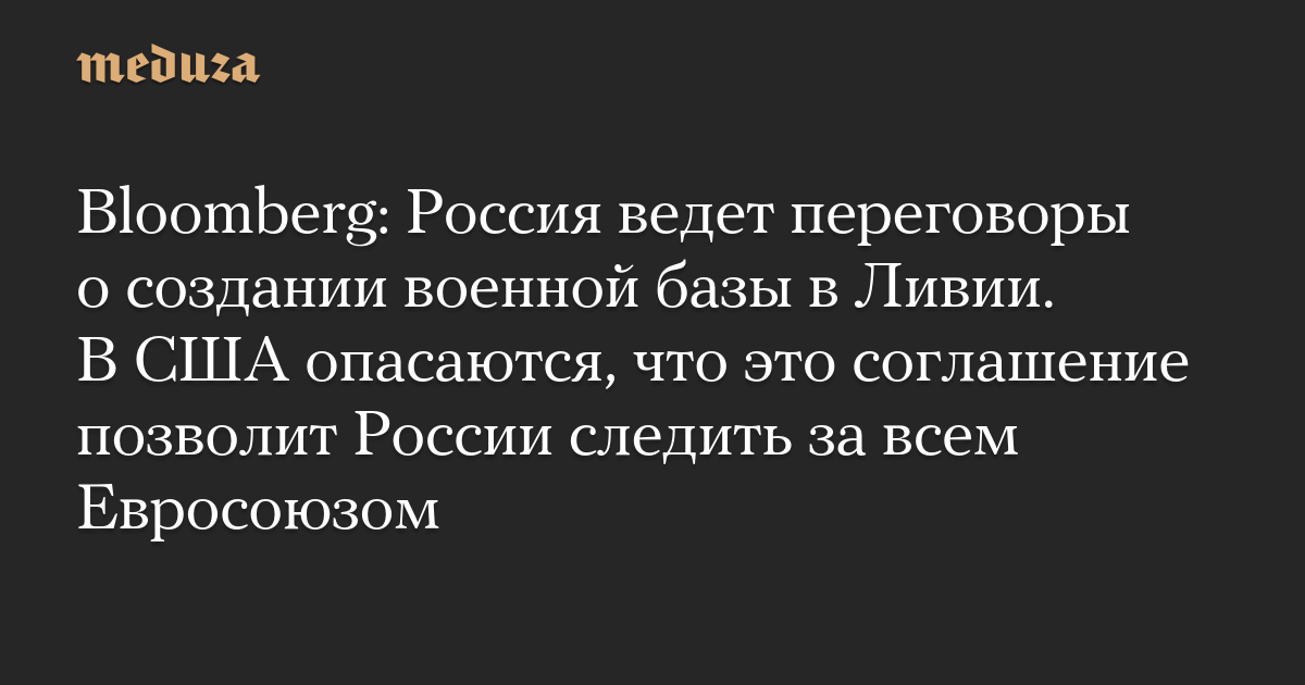 Bloomberg: Россия ведет переговоры о создании военной базы в Ливии. В США опасаются, что это соглашение позволит России следить за всем Евросоюзом