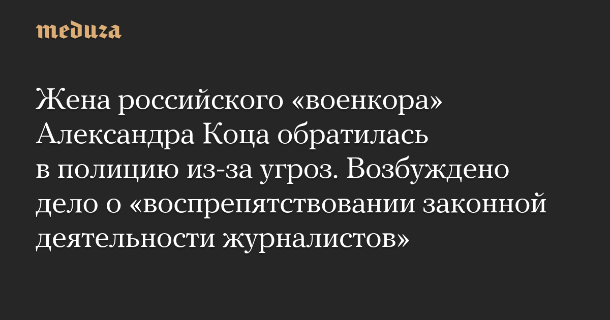 Жена российского «военкора» Александра Коца обратилась в полицию из-за угроз. Возбуждено дело о «воспрепятствовании законной деятельности журналистов»