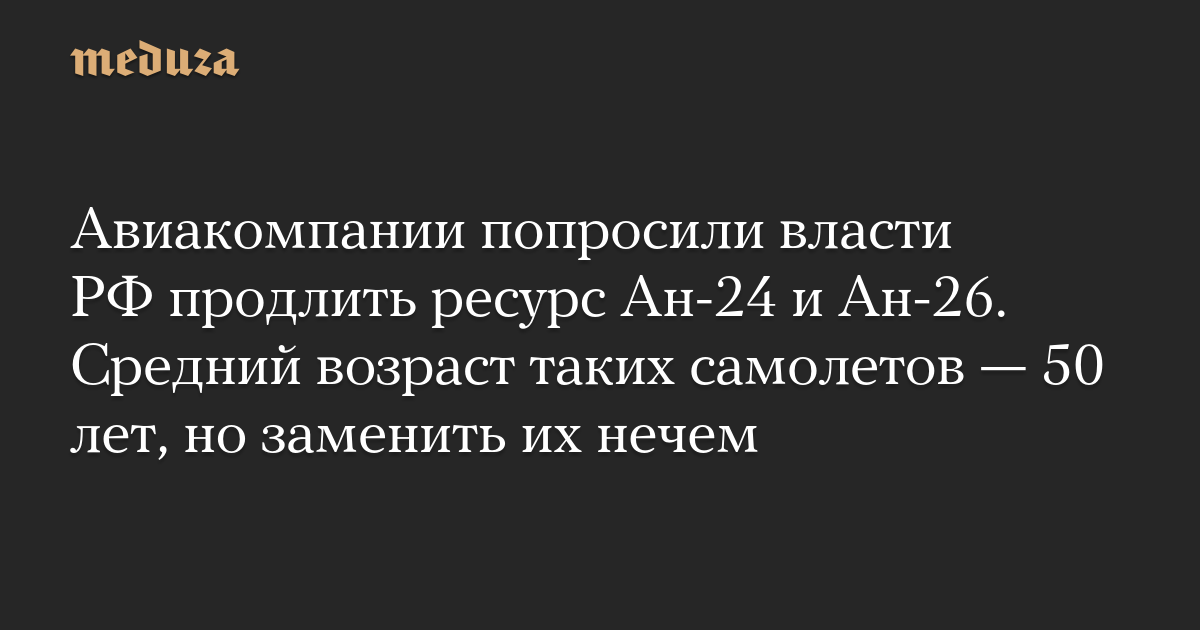 Авиакомпании попросили власти РФ продлить ресурс Ан-24 и Ан-26. Средний возраст таких самолетов — 50 лет, но заменить их нечем