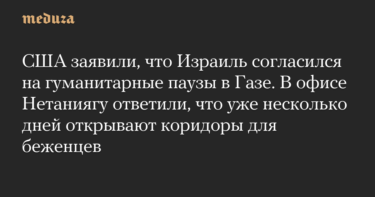 США заявили, что Израиль согласился на гуманитарные паузы в Газе. В офисе Нетаниягу ответили, что уже несколько дней открывают коридоры для беженцев