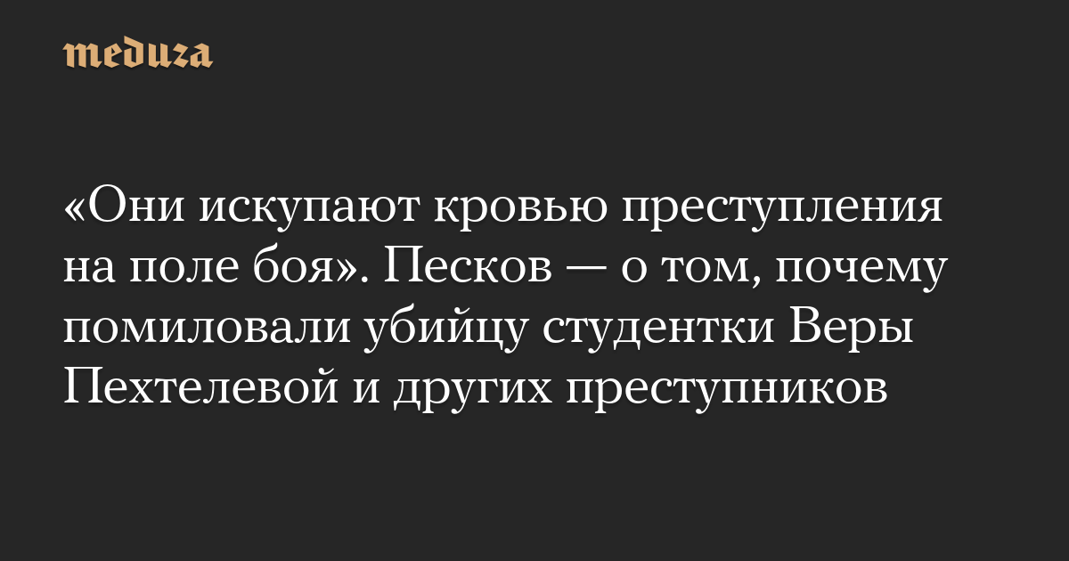 «Они искупают кровью преступления на поле боя». Песков — о том, почему помиловали убийцу студентки Веры Пехтелевой и других преступников