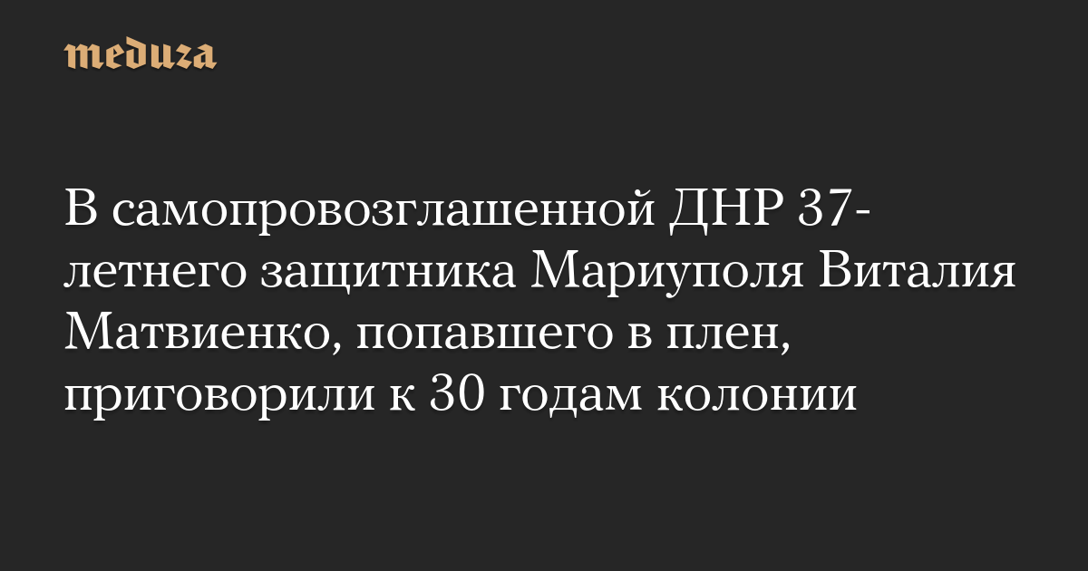В самопровозглашенной ДНР 37-летнего защитника Мариуполя Виталия Матвиенко, попавшего в плен, приговорили к 30 годам колонии