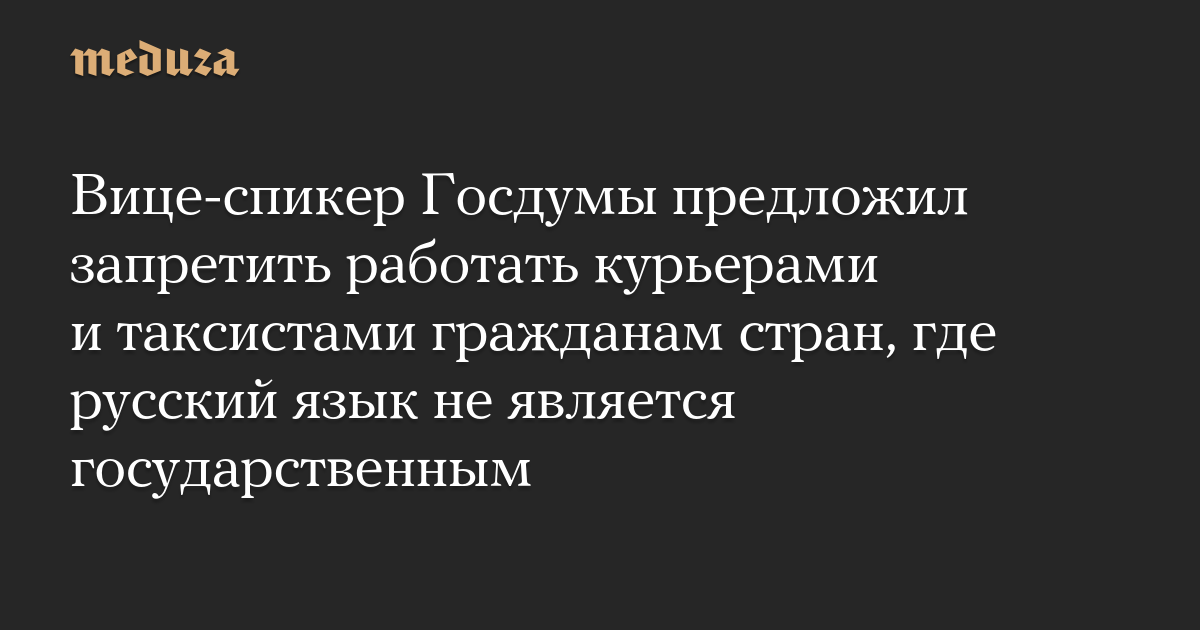 Вице-спикер Госдумы предложил запретить работать курьерами и таксистами гражданам стран, где русский язык не является государственным