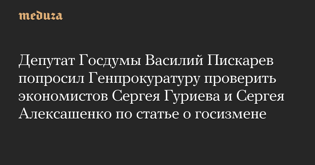 Депутат Госдумы Василий Пискарев попросил Генпрокуратуру проверить экономистов Сергея Гуриева и Сергея Алексашенко по статье о госизмене