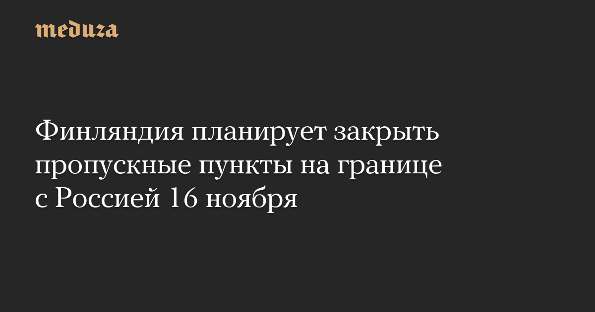 Финляндия планирует закрыть пропускные пункты на границе с Россией 16 ноября