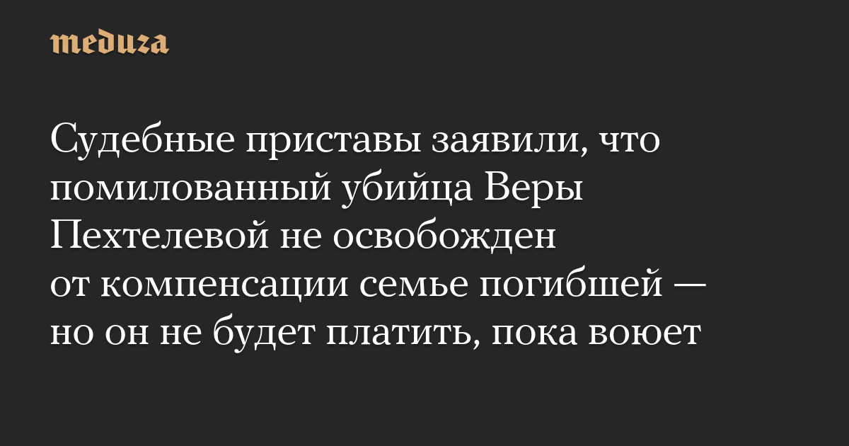 Судебные приставы заявили, что помилованный убийца Веры Пехтелевой не освобожден от компенсации семье погибшей — но он не будет платить, пока воюет