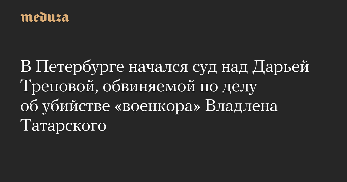 Второй Западный окружной военный суд на выездном заседании в Петербурге начал рассмотрение уголовного дела, возбужденного в отношении Дарьи Треповой после убийства российского «военкора» Владлена Татарского, сообщает «Фонтанка».