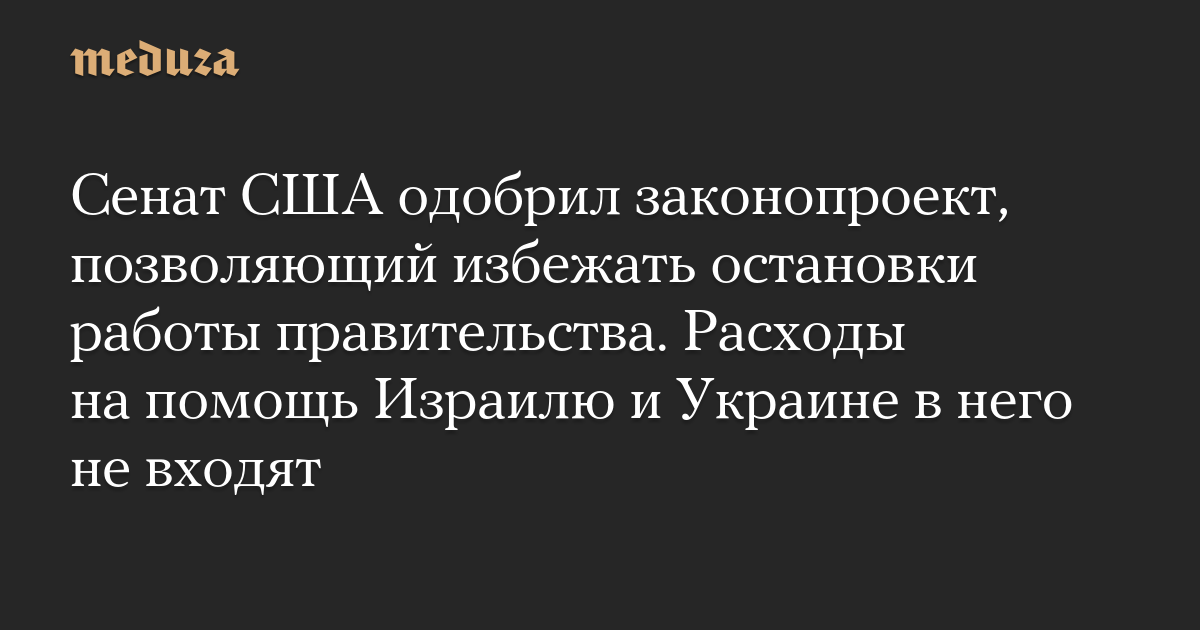 Сенат США одобрил законопроект, позволяющий избежать остановки работы правительства. Расходы на помощь Израилю и Украине в него не входят