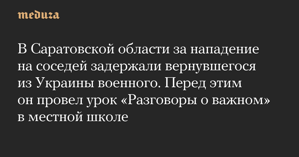 В Саратовской области за нападение на соседей задержали вернувшегося из Украины военного. Перед этим он провел урок «Разговоры о важном» в местной школе