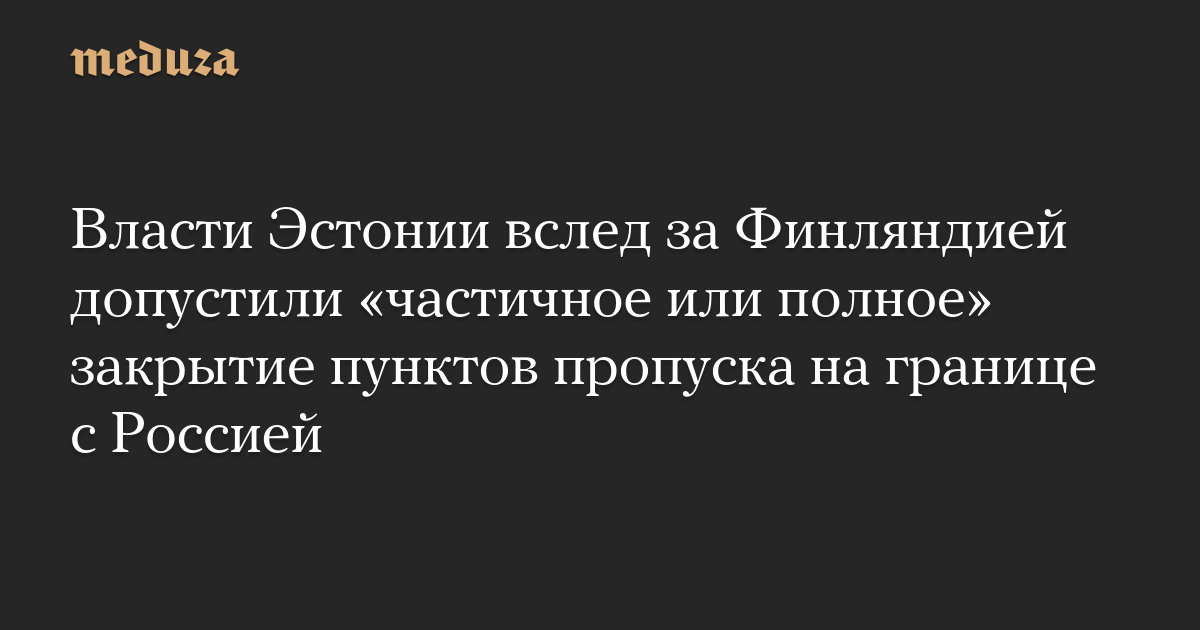 Власти Эстонии вслед за Финляндией допустили «частичное или полное» закрытие пунктов пропуска на границе с Россией