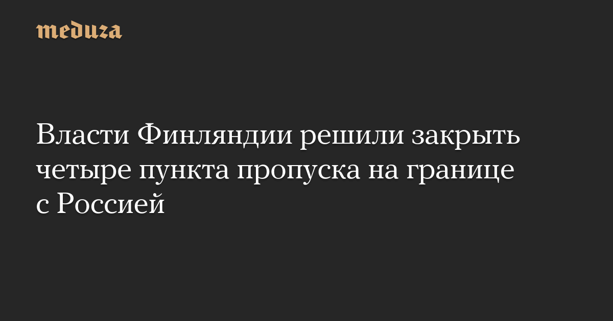 Власти Финляндии решили закрыть четыре пункта пропуска на границе с Россией