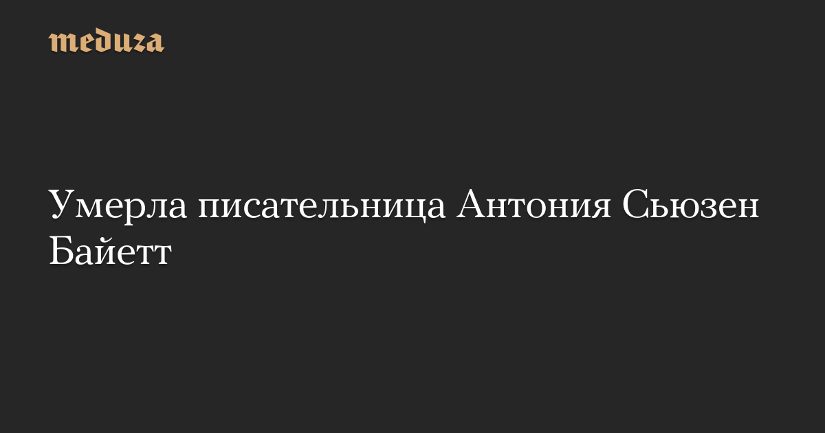 В возрасте 87 лет умерла английская писательница Антония Сьюзен Байетт. Об этом сообщила The Guardian со ссылкой на издательство Chatto & Windus.