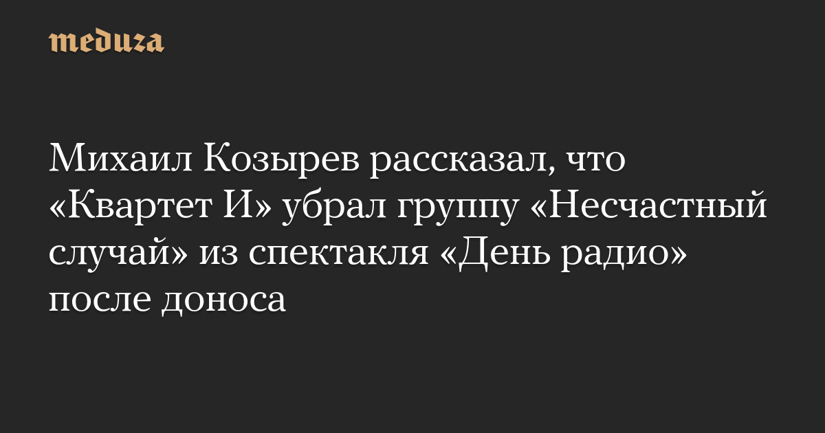 Михаил Козырев рассказал, что «Квартет И» убрал группу «Несчастный случай» из спектакля «День радио» после доноса