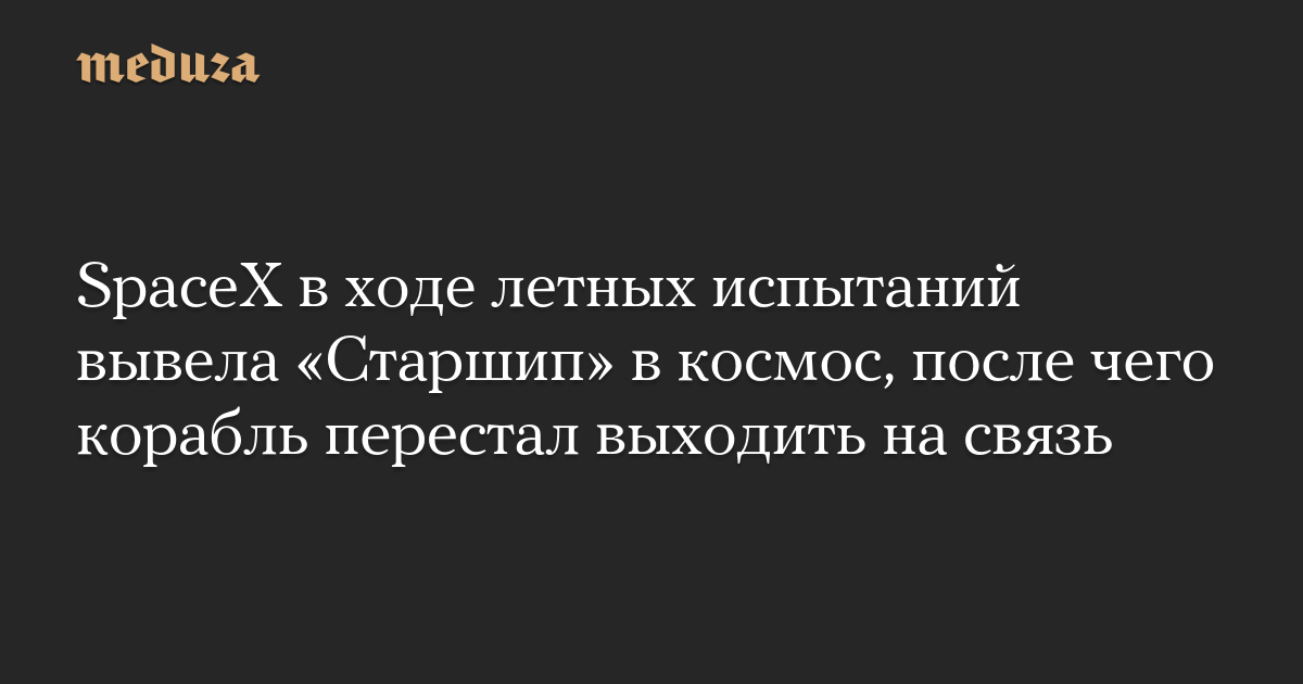 SpaceX в ходе летных испытаний вывела «Старшип» в космос, после чего корабль перестал выходить на связь
