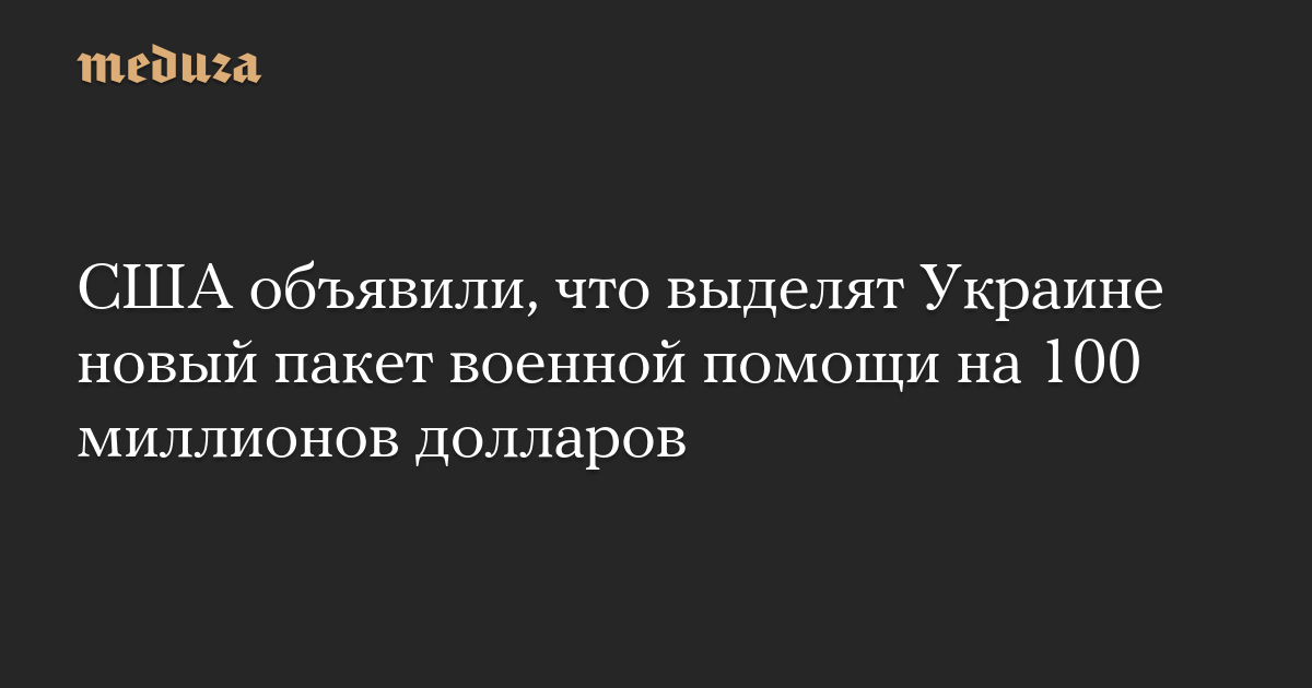 США объявили, что выделят Украине новый пакет военной помощи на 100 миллионов долларов