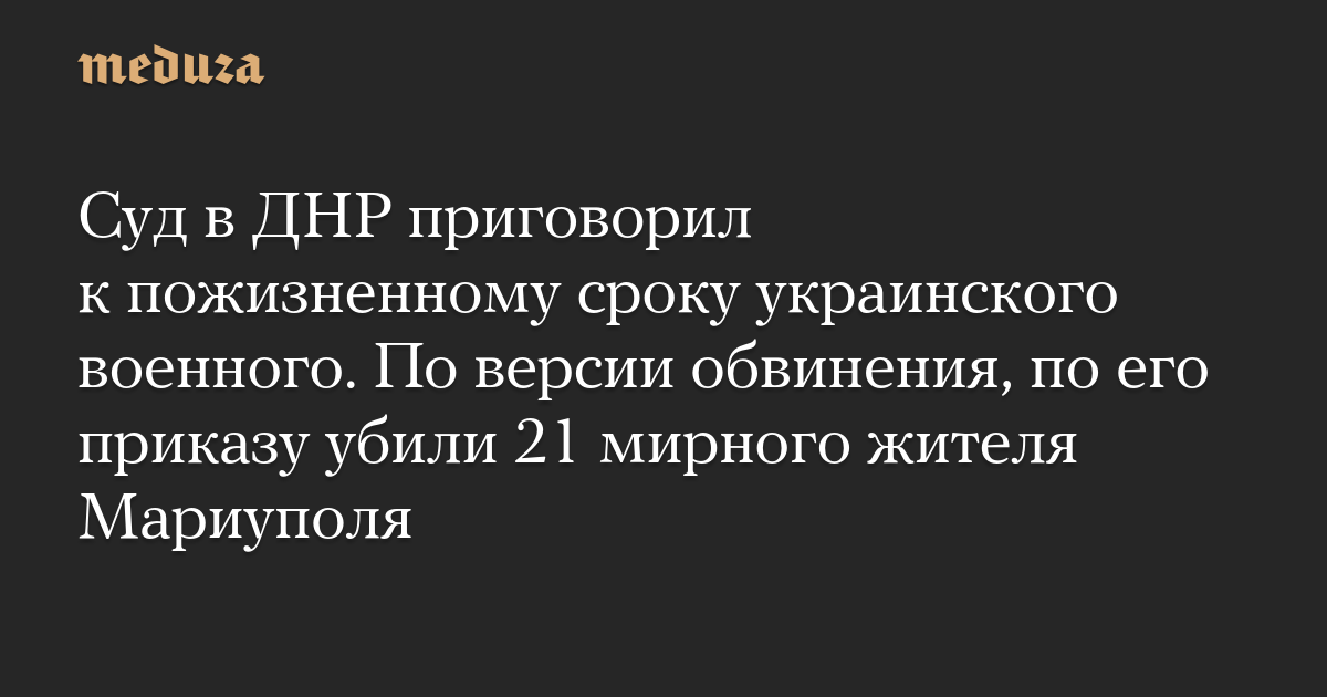 Суд в ДНР приговорил к пожизненному сроку украинского военного. По версии обвинения, по его приказу убили 21 мирного жителя Мариуполя