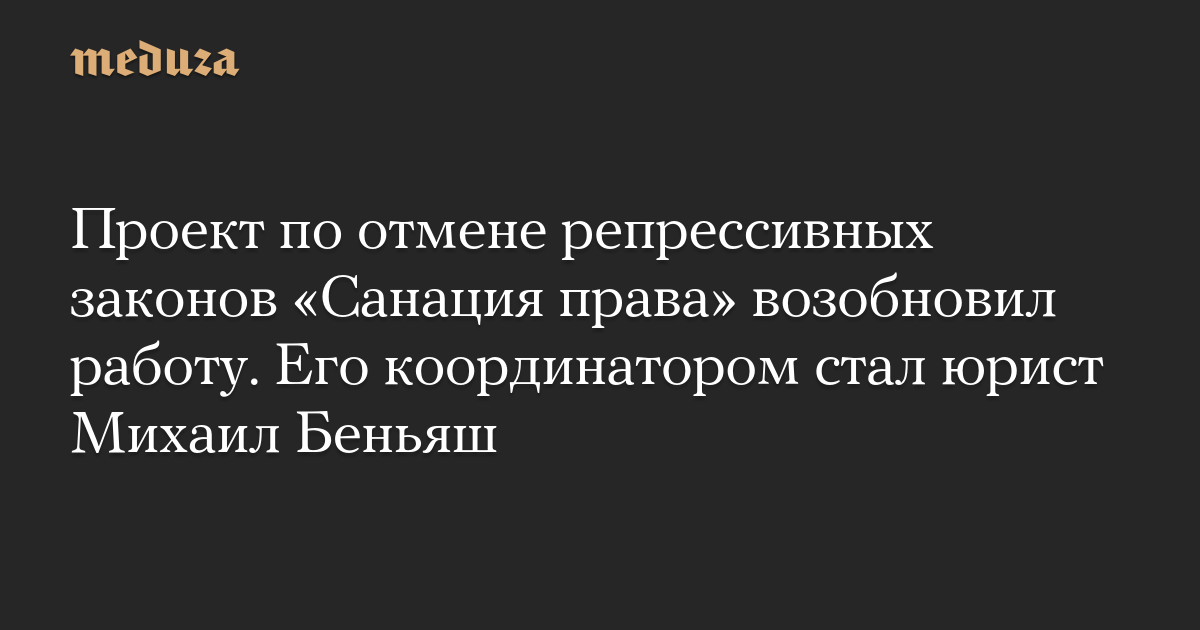 Проект «Санация права», ставящий своей целью отмену «вредного» законодательства РФ, возобновил свою работу. Об этом «Медузе» рассказал новый координатор проекта, юрист и правозащитник из Краснодара Михаил Беньяш, покинувший Россию и теперь проживающий в Вильнюсе.