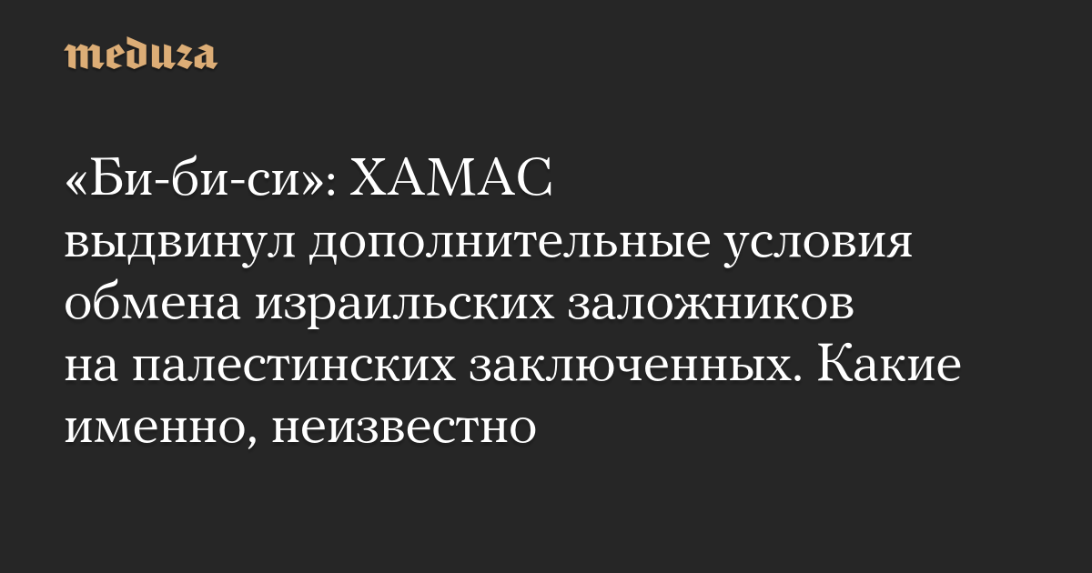 «Би-би-си»: ХАМАС выдвинул дополнительные условия обмена израильских заложников на палестинских заключенных. Какие именно, неизвестно