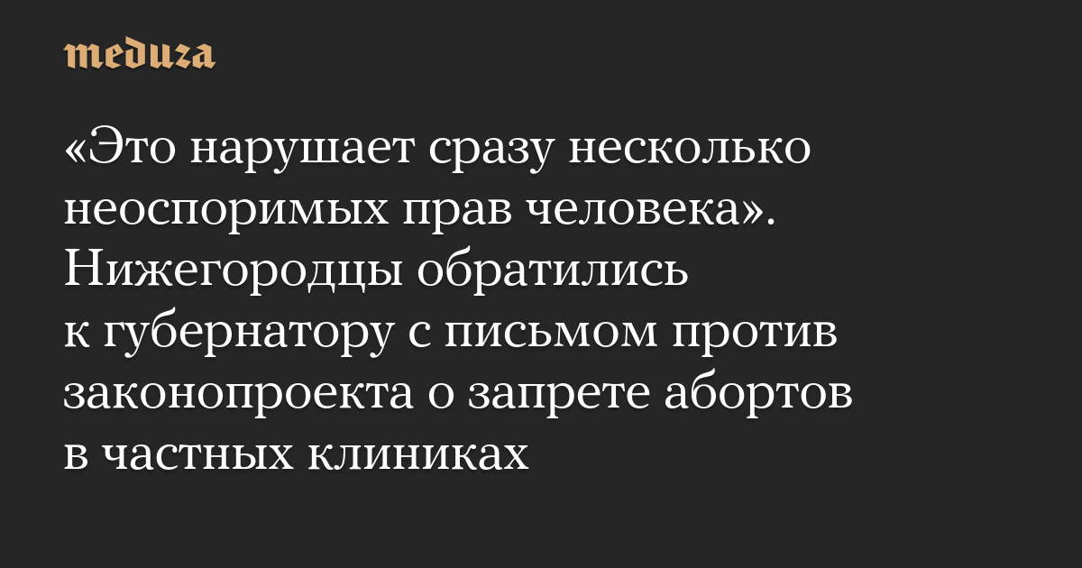 В письме нижегородцы пишут, что «крайне обеспокоены» внесенным документом. Они отмечают, что «принятие такого закона нарушает сразу несколько неоспоримых прав человека», в том числе — право принимать решение относительно того, когда и скольких детей рожать.