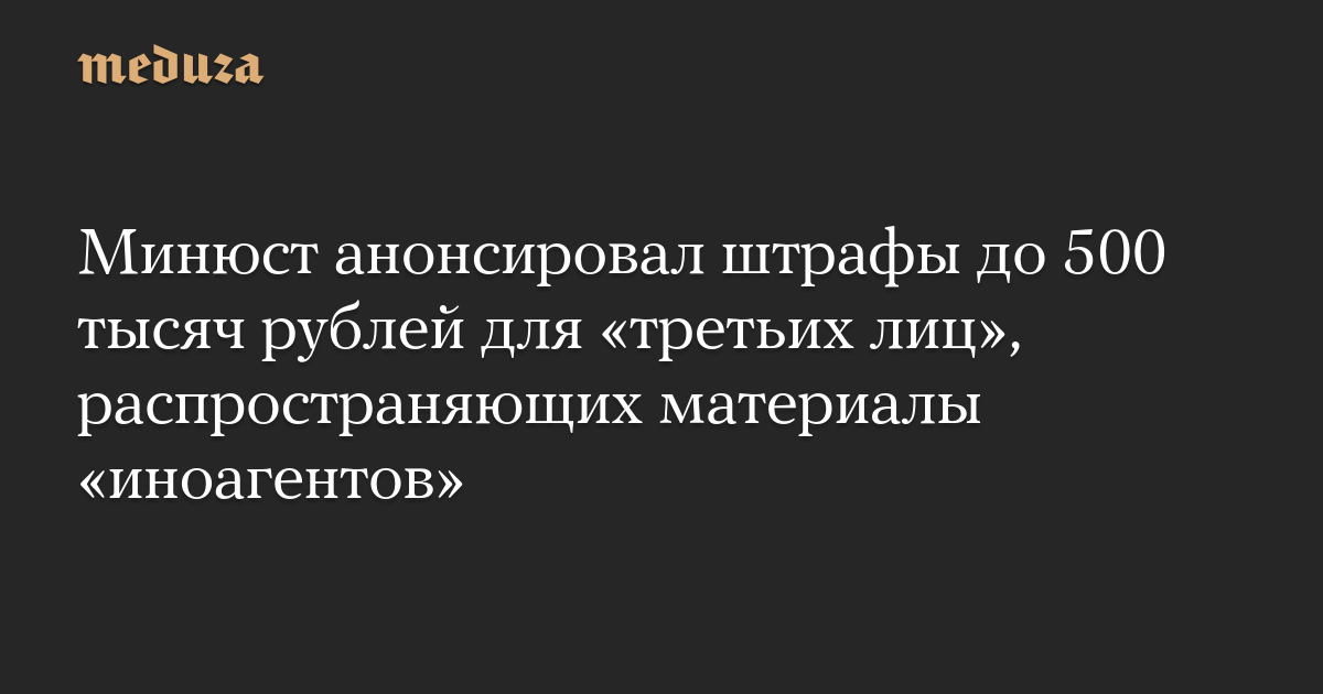 Минюст анонсировал штрафы до 500 тысяч рублей для «третьих лиц», распространяющих материалы «иноагентов»